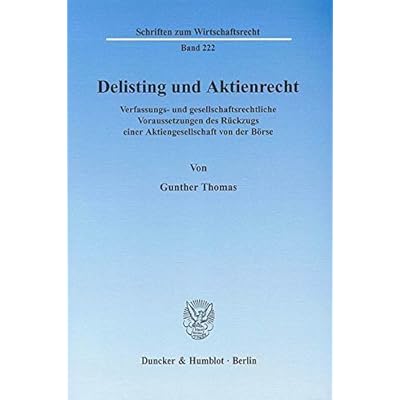 Delisting Und Aktienrecht.: Verfassungs- Und Gesellschaftsrechtliche Voraussetzungen Des Ruckzugs Einer Aktiengesellschaft Von Der Borse. (Schriften Zum Wirtschaftsrecht) PDF Kindle This particular Delisting Und Aktienrecht.: Verfassungs- Und Gesellschaftsrechtliche Voraussetzungen Des Ruckzugs Einer Aktiengesellschaft Von Der Borse. (Schriften Zum Wirtschaftsrecht) Download PDF start with Introduction, Brief Session till theIndex/Glossary page, look at the table of content for additional ...